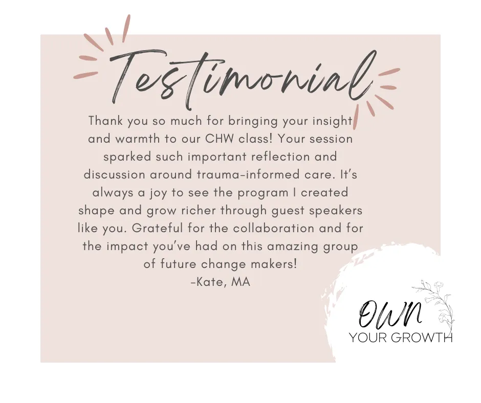 Accountability and connection drive progress. Each week, we’ll gather to review the work, outline action steps, and reflect on any insights or shifts you’ve noticed.