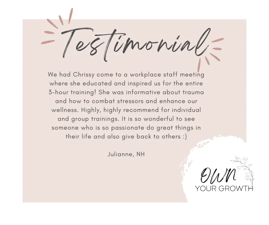 Weekly 1 on 1 texting with Chrissy to ask questions, gain feedback, and encouragement. You'll have unrestricted text-access. Text at any time and I will respond during business hours.